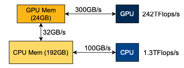 CPU+GPU 异构平台的问题: 高强度的 I/O(KV cache、模型权重)以及带宽限制会导致 CPU 和 GPU 都很难跑到 Compute bound;不同类型的 I/O 速率不同,没法用一个 roofline model 统一建模优化。