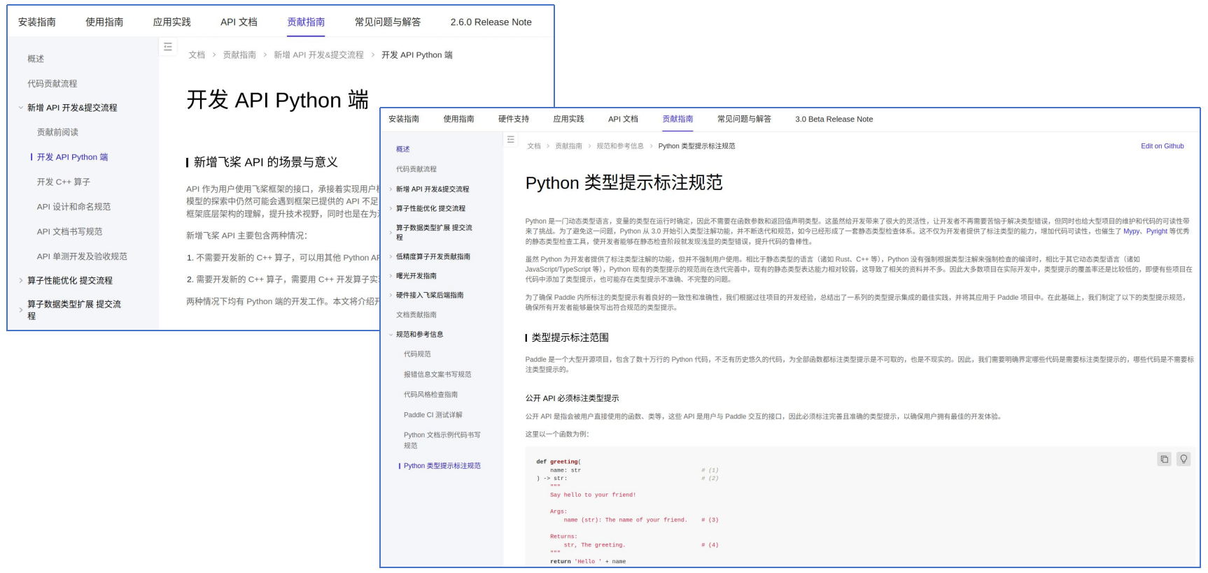 文档建设是另一个需要单独关注的问题。Python 的类型标注虽然仍然是 Python 语言的一部分,但是,对于大部分没有接触过的同学来说,这东西就像是 Python 和 C++ 或者 Rust 的结合体。而且,类型标注本身不仅仅需要对标注熟悉,还需要明确各个接口的实际运行过程才能完成一个正确的标注过程。代码的运行流程需要同学在标注的过程中层层分析,而文档建设需要做的,相当于一个引子,引导大家进入到 Paddle 类型标注的最佳实践中来。